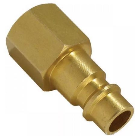 Адаптер с внутренней резьбой 7/16. Предназначен для накручивания на резьбовой штуцер вентиля баллона с хладагентом, с целью дальнейшего подключения к нему быстросъемного адаптера высокого давления.