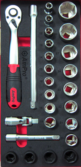 Приобрести T45419 Набор головок и аксессуаров 1/2" 26пр., в мягком ложементе от компании AmPro (Тайвань) из раздела Ложементы мягкие (VA серия)