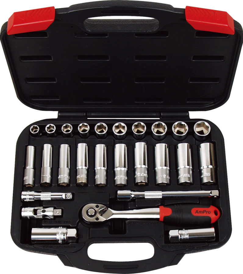 Приобрести T45231 Набор головок и аксессуаров 3/8", 26 предметов от компании AmPro (Тайвань) из раздела Наборы инструмента в пластиковых кейсах