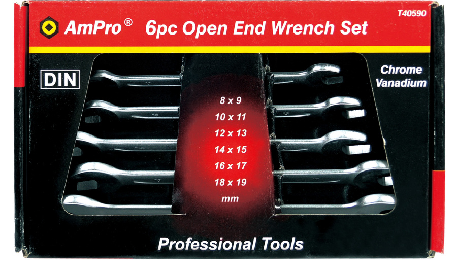 Приобрести T40590 Набор ключей рожковых,6 предметов(8-19мм) от компании AmPro (Тайвань) из раздела Наборы ключей по цене 1 685 рублей.