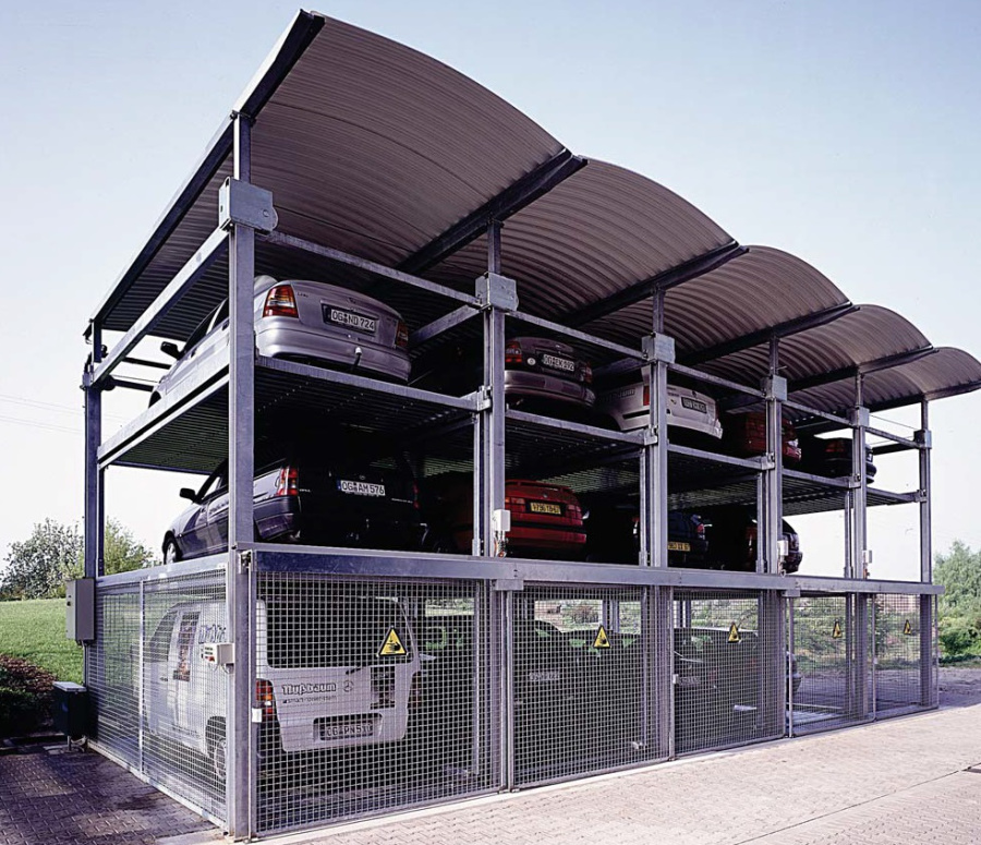 Гидравлическая парковочная система Parkline N5803. Парковка на 3-х уровнях без ямы.Интелектуальная техника перемещения по принципу Cubus. Область применения: Жилые и офисные здания, автосалоны, прокат автомобилей. Простое обслуживание - полностью автоматический выбор парковочного места. Парковочные места пронуммерованы начиная с первого, сверху-слева. Простое нажатие клавиши, соответствующей номеру парковочного места автоматически приводит систему в действие и желаемый автомобиль предоставляется в распоряжение. При выборе парковочного места в верхнем уровне парковочной системы средние и нижние платформы автоматически смещаются вправо.Ширина парковочного места 230 см и высота стоек 500 см являются стандартным исполнением. Масса автомобиля: 2000кг, до 2600 кг - опционально.