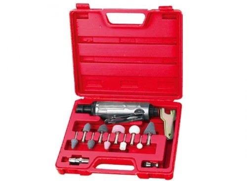 Высокооборотистая пневматическая прямая зачистная машинка с набором камней в удобном пластиковом кейсе.