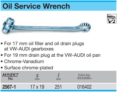 Ключ для обслуживания масленых систем 17х19 HAZET 2567-1 купить в Новосибирске и других городах России
