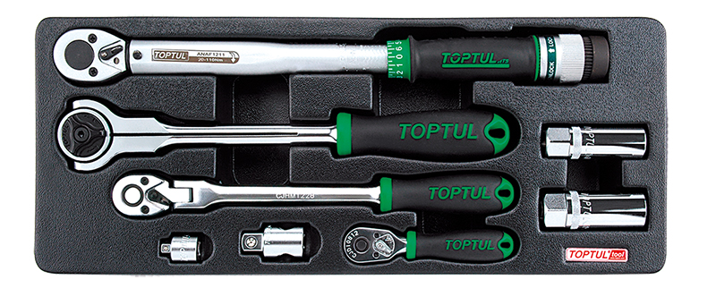 Набор трещоток 1/4", 3/8", 1/2", динамометрический ключ 3/8" 20-110 Нм, переходники и свечные головки, 8 предметов в ложементе (B) TOPTUL купить в Новосибирске и других городах России