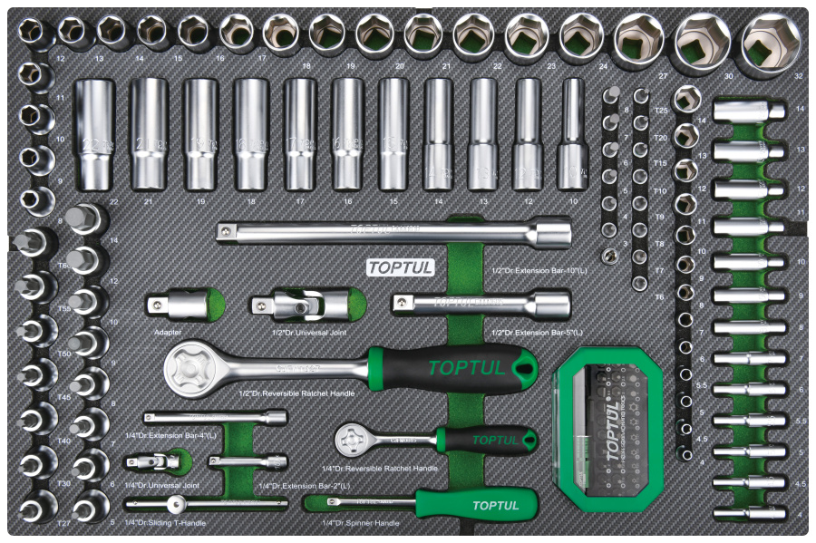 Набор головок и аксессуаров 1/4" и 1/2" 6-гр.,133 пр. в мягком ложементе TOPTUL GEDD348 купить в Новосибирске и других городах России