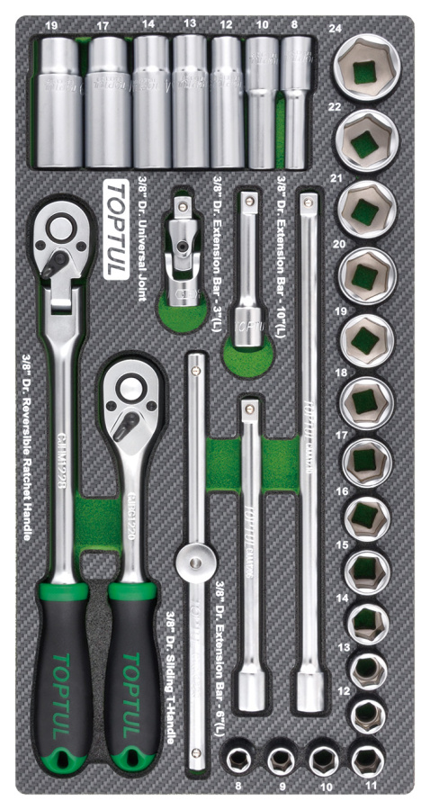 Набор головок и аксессуаров 3/8", 30 пр. в мягком ложементе TOPTUL GEA3005 купить в Новосибирске и других городах России