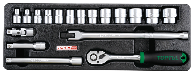 Набор головок и аксессуаров 3/8" 6-24 мм, 18 предметов в ложементе (A) TOPTUL GCAT1808 купить в Новосибирске и других городах России