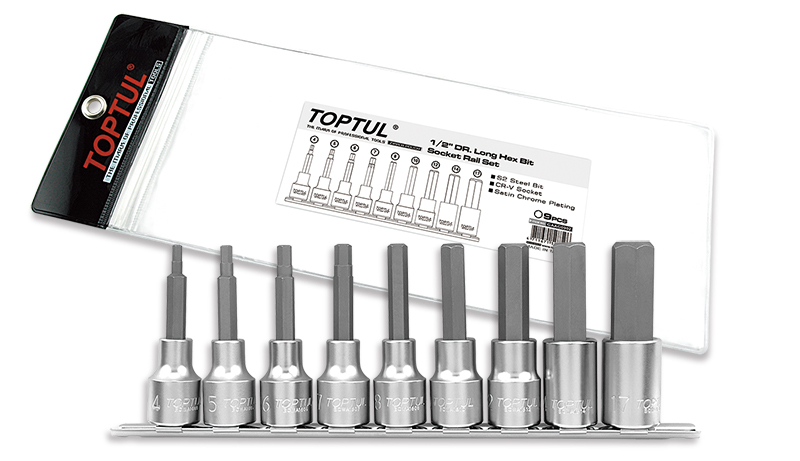 Набор торцевых головок 1/2" с шестигранными вставками 4-17 мм L=80 мм на планке 9 предметов TOPTUL купить в Новосибирске и других городах России